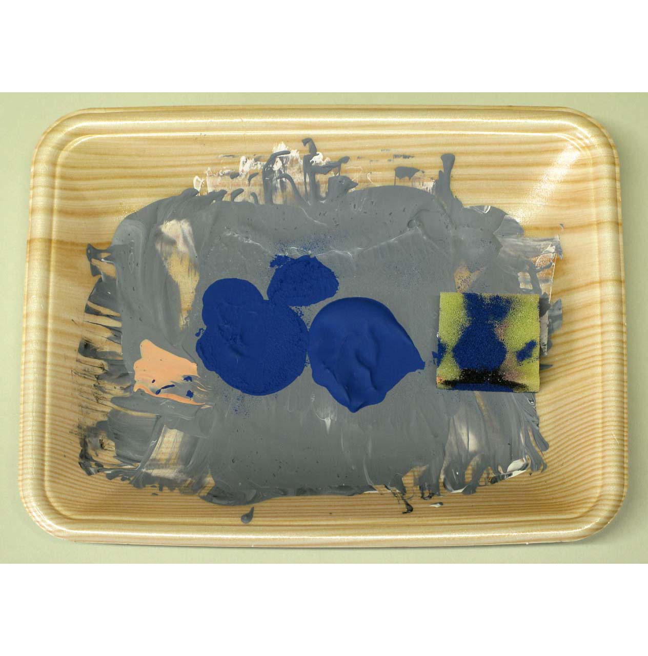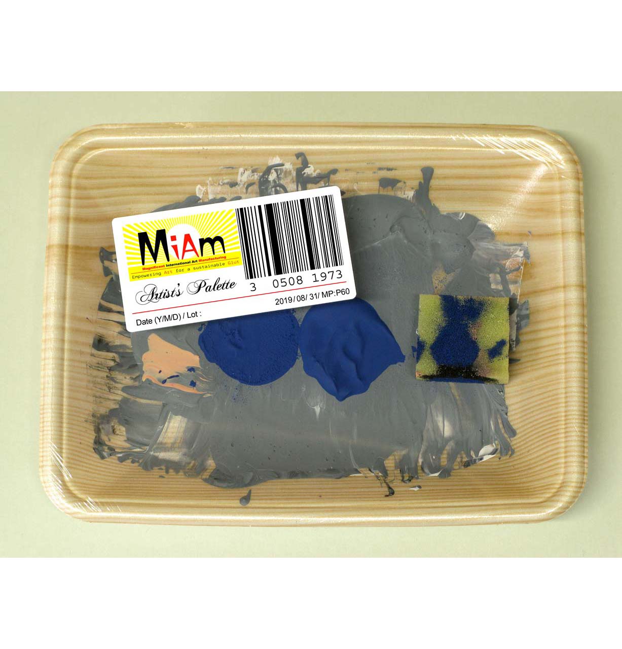 About the collection: Polystyrene trays of variable dimensions and colours covered by oil and acrylic paint residue, wrapped in plastic film and Miam label.