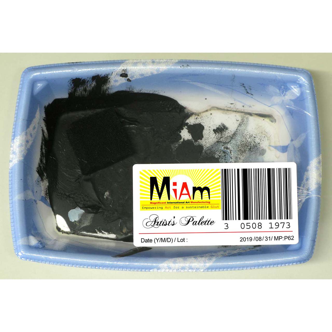 About the collection: Polystyrene trays of variable dimensions and colours covered by oil and acrylic paint residue, wrapped in plastic film and Miam label.